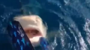 لحظات مرعبة، تمكنت غطاسة أميركية معروفة من النجاة في اللحظات الأخيرة من موت محتم، بعدما كادت تقفز إلى فم سمكة قرش النمر الجائعة قبالة سواحل هاواي.