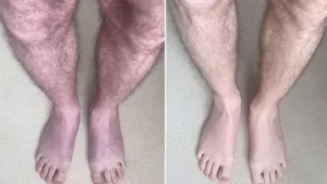وبعد دقيقة واحدة من وقوف المريض، تبدأ ساقاه بالاحمرار ثم تتحولان إلى اللون الأزرق وتصبح عروقه أكثر بروزا للخارج ومن ثم يعاني الحكة، وفقا للحالة التي سلطت عليها الضوء شبكة “سكاي نيوز” البريطانية.