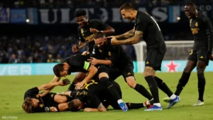 وسجل فينيسيوس جونيور وجود بلينجهام هدفي ريال مدريد في الشوط الأول بعدما تقدم نابولي بواسطة ليو أوستيجارد بضربة رأس.