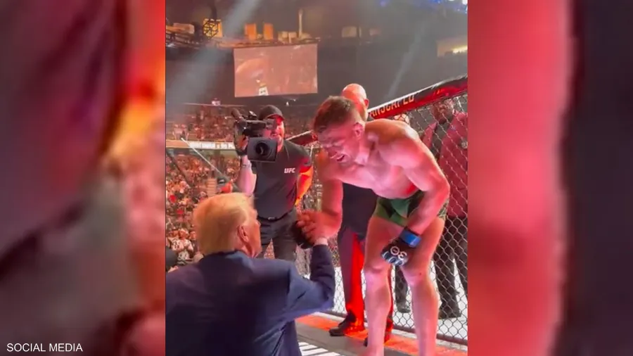 فيديو لمق،اتل يقفز فوق القفص ليصافح #ترامب بعد فوزه بنزال